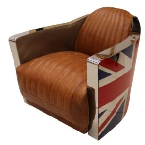 Add a bold statement to your interiors with this luxury aviator single-seater sofa, upholstered in high-quality PU leather with UK flag customization. Featuring a metal frame, cushion back, and foam filling, it blends durability, comfort, and style—perfect for living rooms, hotels, and offices.