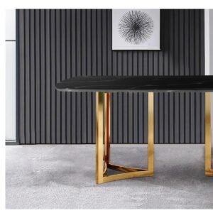 The golden iron legs provide a striking contrast while ensuring strength and stability. Designed to comfortably seat 8 people, this table is perfect for family dining, fine restaurants, luxury cafes, banquet halls, and hotel dining areas.