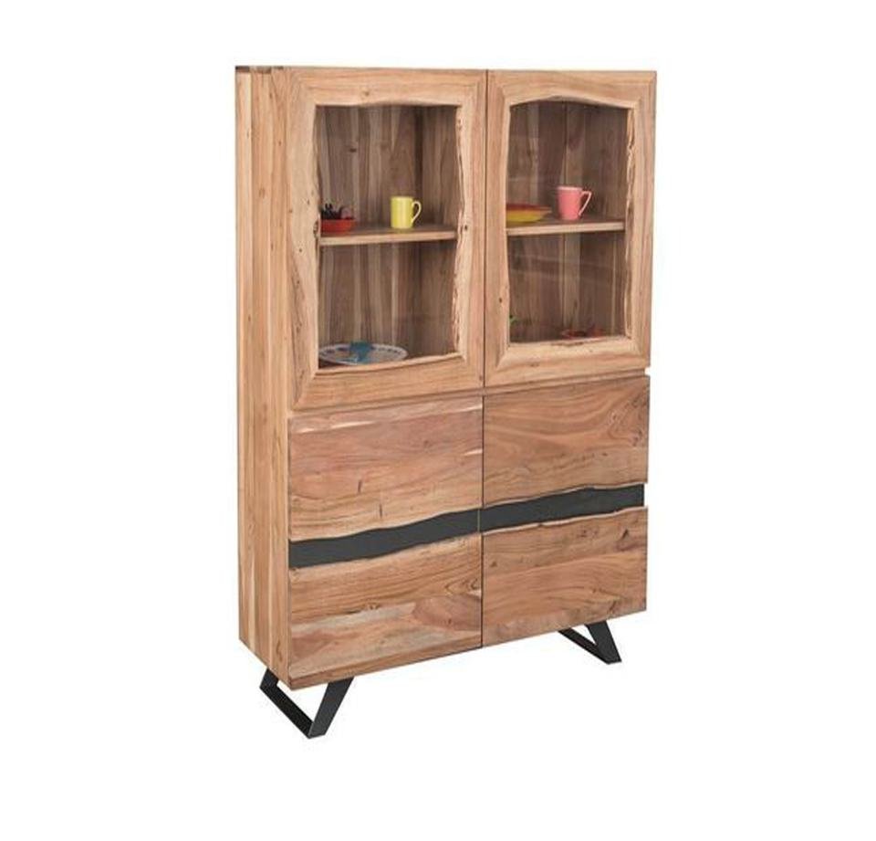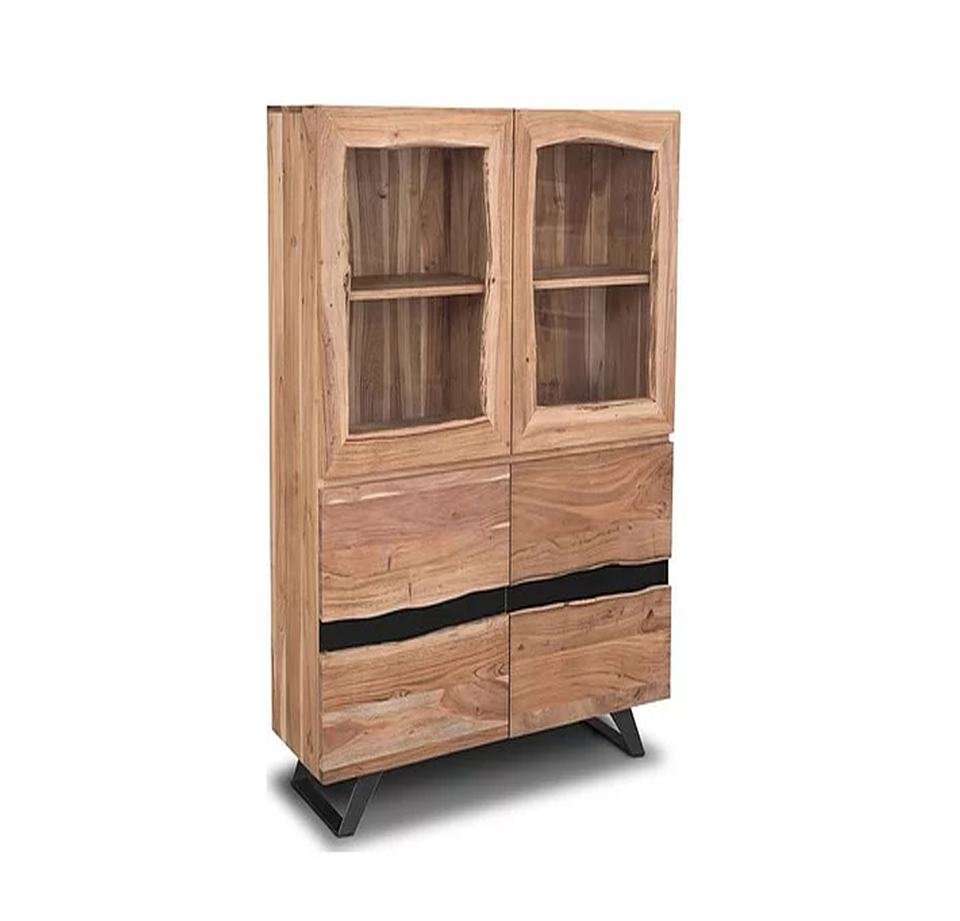 Add timeless charm to your interiors with this solid wood live edge bookshelf and display cabinet. Designed with 2 doors and 4 shelves, it offers ample storage and display space, perfect for use as a bookshelf, buffet, or multipurpose cabinet in any modern living room, dining area, or office.