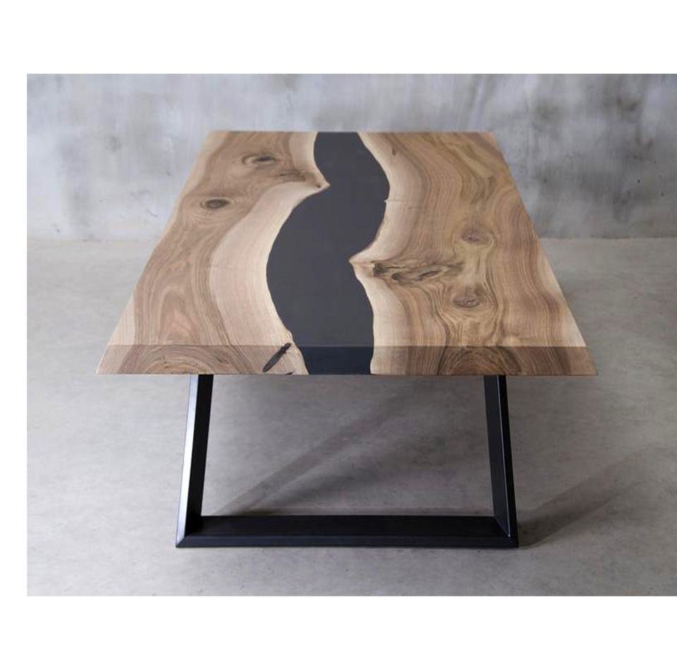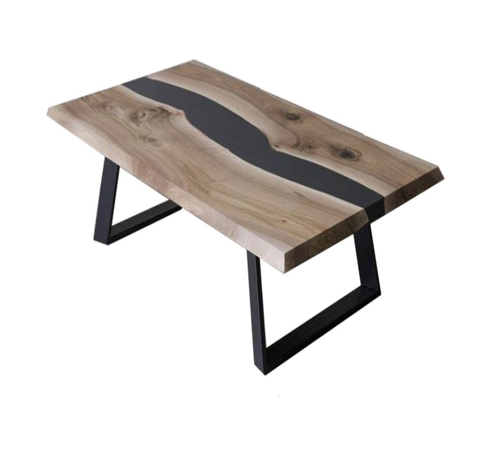 Modern Luxury Live Edge Wooden & Black Epoxy Resin Coffee Table