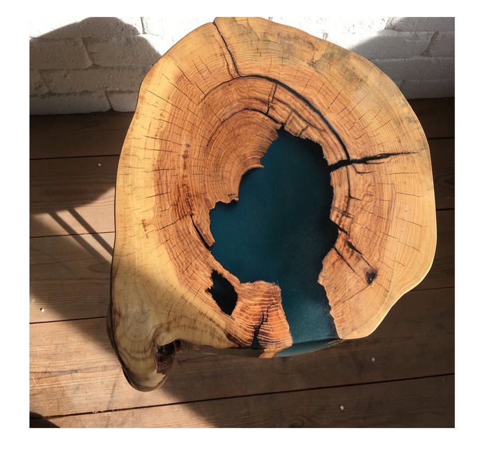 | Product Name | Natural Live Edge Block Design Solid Wood & Blue Epoxy Resin Round Coffee Table |